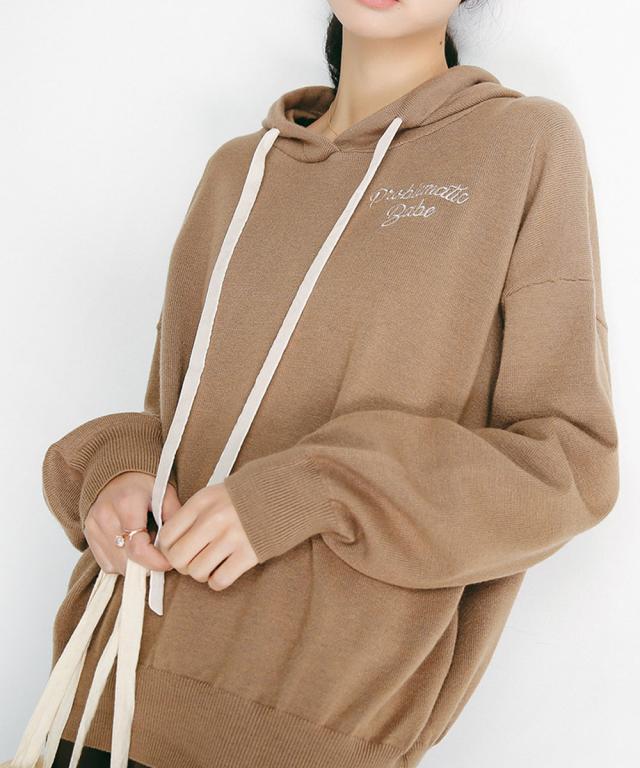 ニットプルオーバー パーカー レディース 春ニット ニット 春パーカー トップス ニットパーカー ロゴ 【EAL】