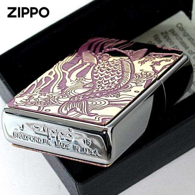 Zippo ジッポライター 鯉 カープ ピンク #200 ゴールドプレート 両面加工 ニッケルメッキ 2MPP-Carp PK GP メール便専用商品