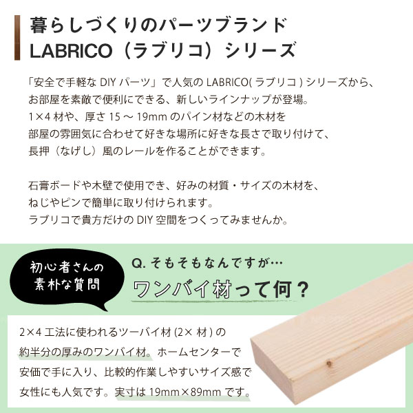 ラブリコ LABRICO IRON 1×4アジャスター DIY パーツ つっぱラブリコ LABRICO NAGESHI RAIL 長押 ナゲシ 1×4 パイン材 DIY パーツ 棚 壁 石膏ボード 賃貸 簡単 傷つけない レイアウト 自由 模様替え ワンバイ 角材 木材 柱 おしゃれ 201905-01