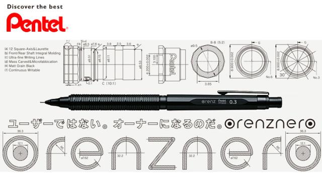 ぺんてる シャープペンシル オレンズネロ 0.3 ブラック PP3003-A シャーペン 0.3mm
