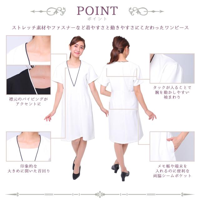 エステ ユニフォーム ワンピース 制服 半袖 美容 医療 事務 受付 業務用 レディース 女性用 おしゃれ かわいい 無地 シンプル メディカル ネイル サロン アイリスト クリニック ストレッチ 背中ファスナー ポケット付 maon03 宅配のみ