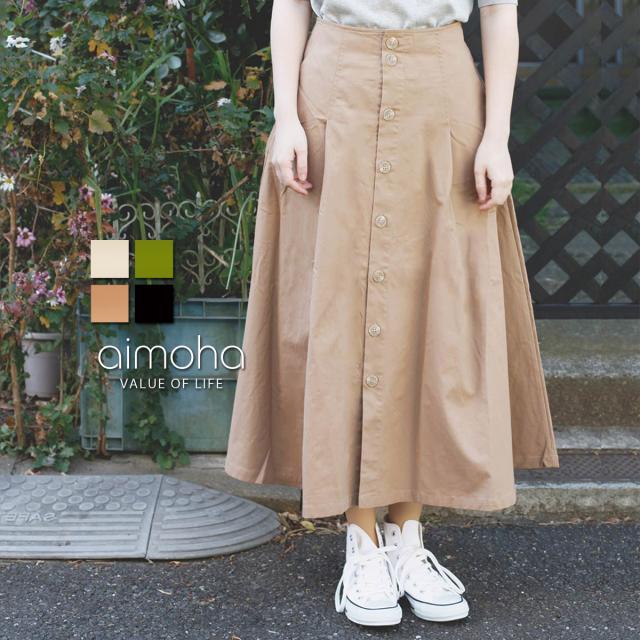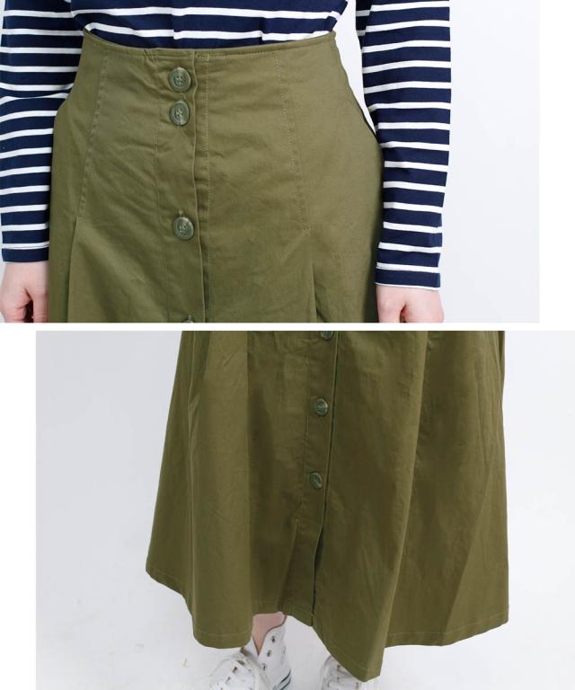 綿ツイルフレアロングスカート ロングスカート レディース マキシスカート ロング マキシ スカート フレアスカート ボタン コットン 綿