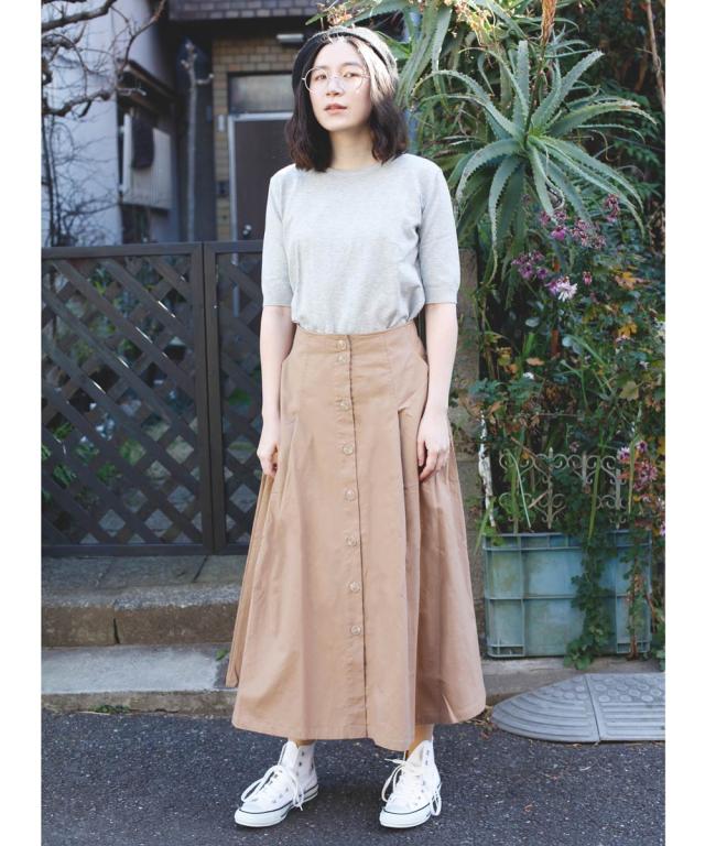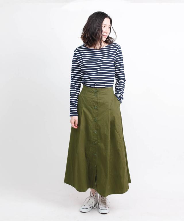 綿ツイルフレアロングスカート