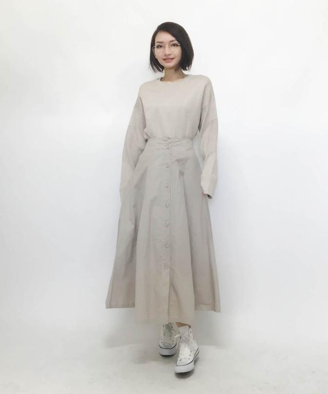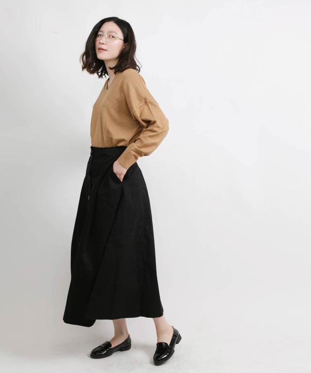 《 2019春の新作! 》フロントの釦デザインが特徴のロングスカート。