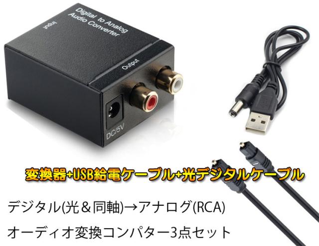 オーディオ変換器 デジタルからアナログ変換 メッキ加工端子 コンポジット出力 USB、光ケーブル付き 3点セット DACSET3