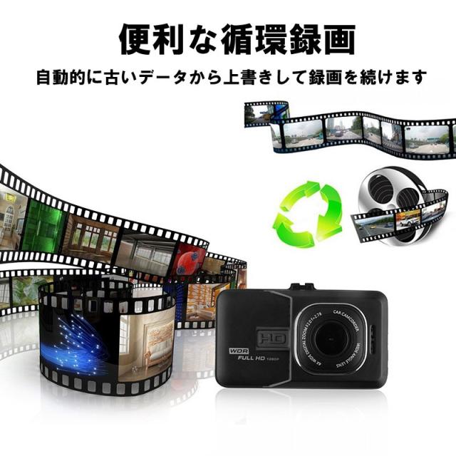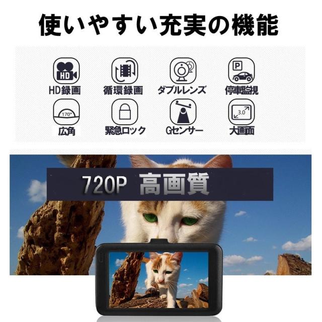 前後カメラドラレコ 12V対応 前後録画対応 ドライブレコーダー スクリーン バックカメラ 暗視 LED 付き その場で再生 FH06H