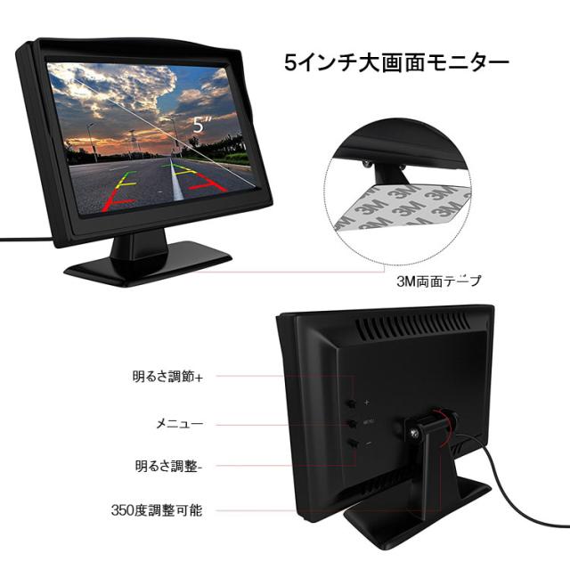 5インチバックカメラセット 大画面モニター +暗視カメラ 170広角 赤外線LED8個搭載 OMT50BK801