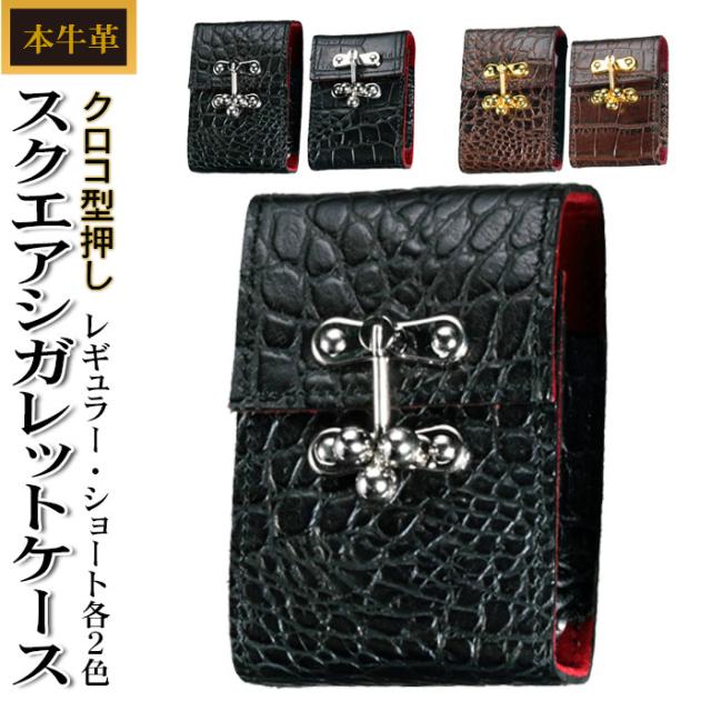 | スクエアシガレットケース レギュラー ショート各2色本牛革クロコ型押し日本製 箱入り | |