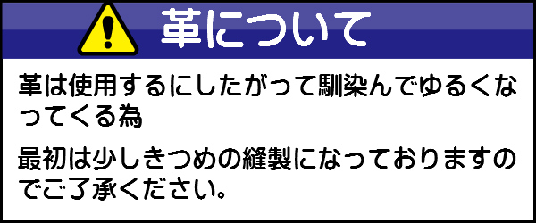 | ご注意 | ・天然皮革を使用しており、表面の革・色にムラがある場合がございます。あらかじめご了承の上お買い求めください。 ・水濡れは変色、カビ等の原因となります。 ・お客様のご利用のブラウザの環境により商品の色合いが実際のものと多少異なる場合がございますので、予めご了承ください。 ・革は使用するにしたがって馴染んでゆるくなってくるため、最初は少しきつめの縫製になっておりますのでご了承ください。 |