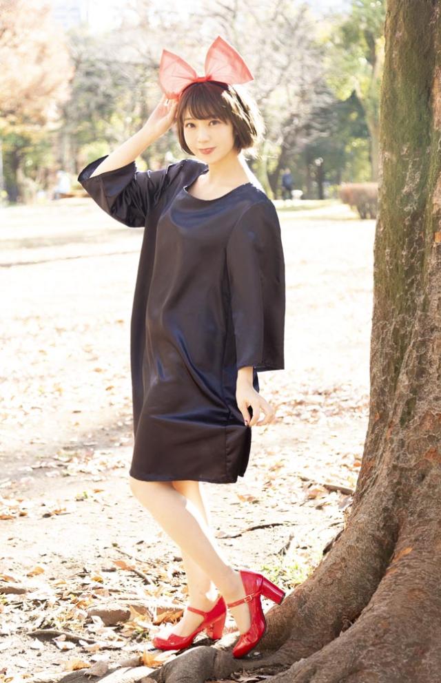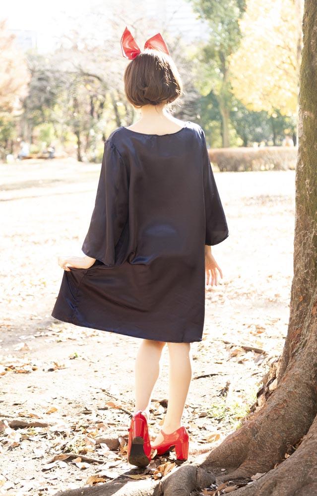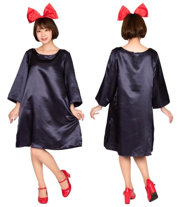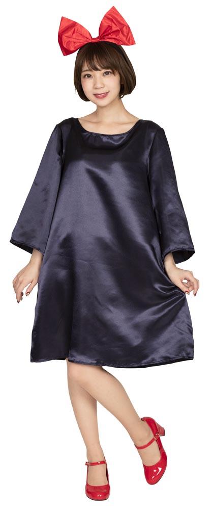 落ち着いた紺色のゆったりワンピースと、大きなリボンカチューシャのセット。露出を控えたい方にもおすすめの、幅広い方に対応できるサイズです。あの名作アニメの主人公になりきって!