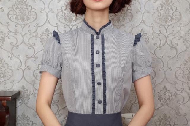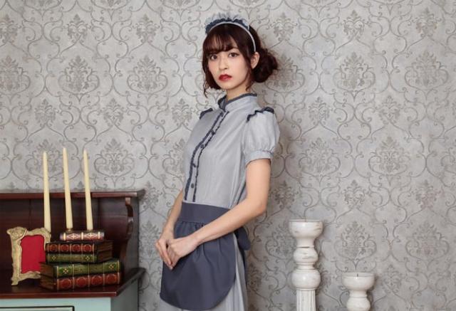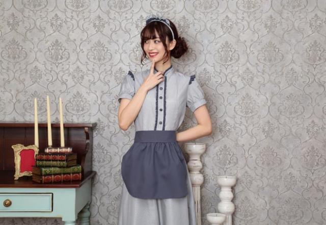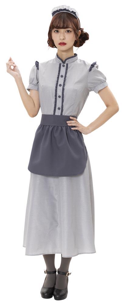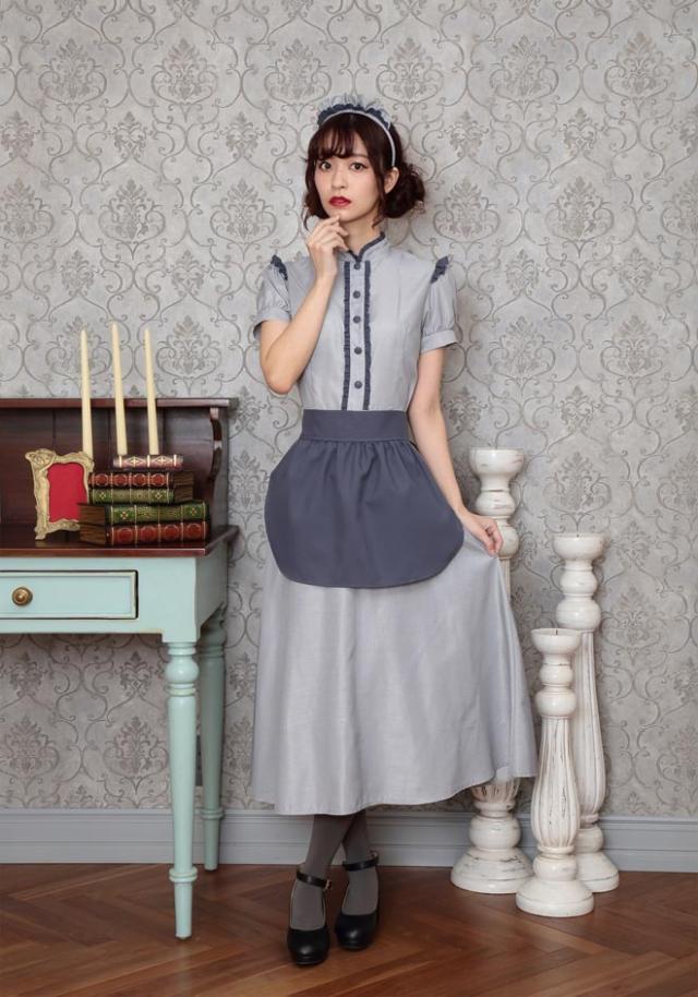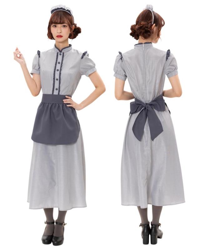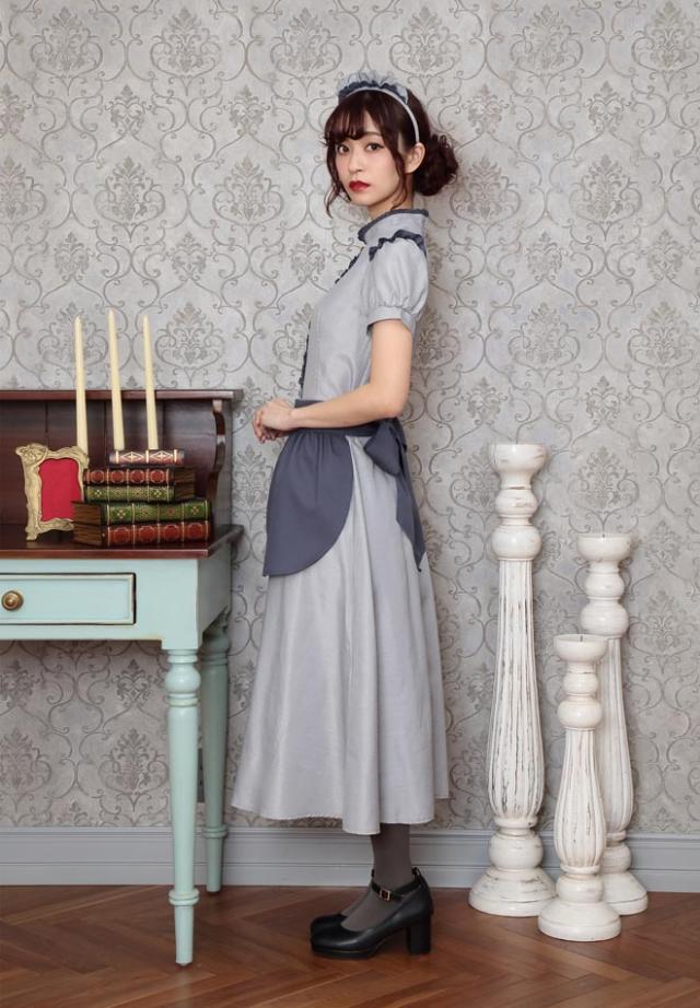 控えめで落ち着いたカラーとロング丈でクラシカルな印象。ふっくらとしたパフスリーブの袖山には小さなフリルも。派手すぎず、コスプレ初心者やママにもおすすめです。