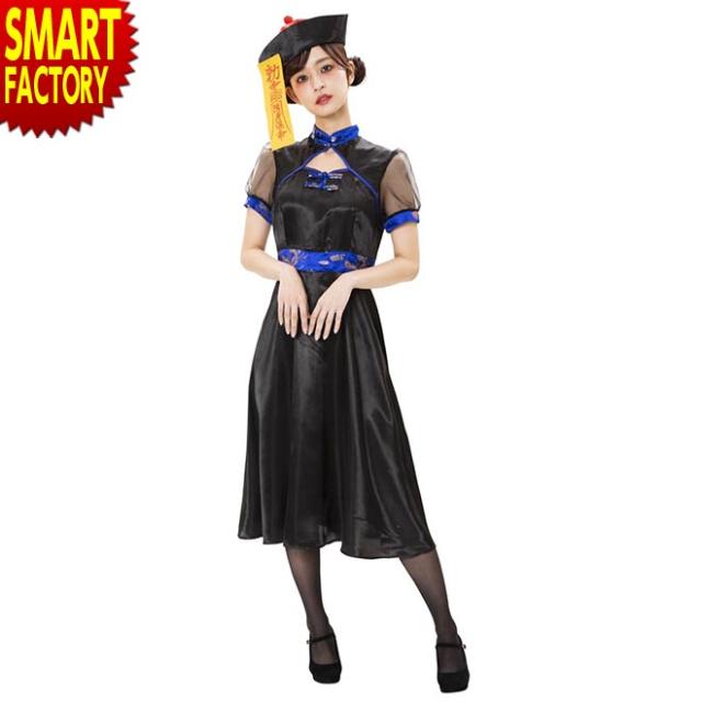 ハロウィン コスプレ キョンシー チャイナ チャイナ服 エレガントキョンシー ロングスカート お札 ホラー ゾンビ コスプレ コスチューム レディース 女性 衣装 仮装 ハロウィーン