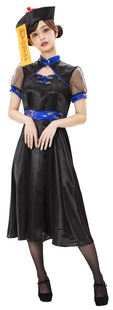 ハロウィン コスプレ 【全品P3倍】 キョンシー チャイナ チャイナ服 エレガントキョンシー ロングスカート お札 ホラー ゾンビ 送料