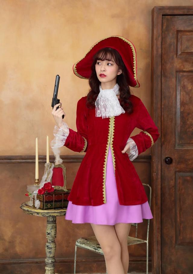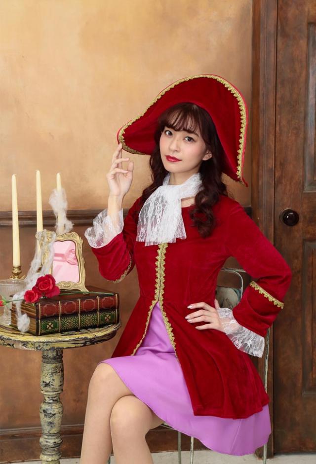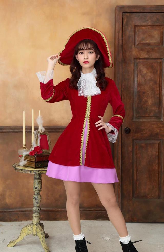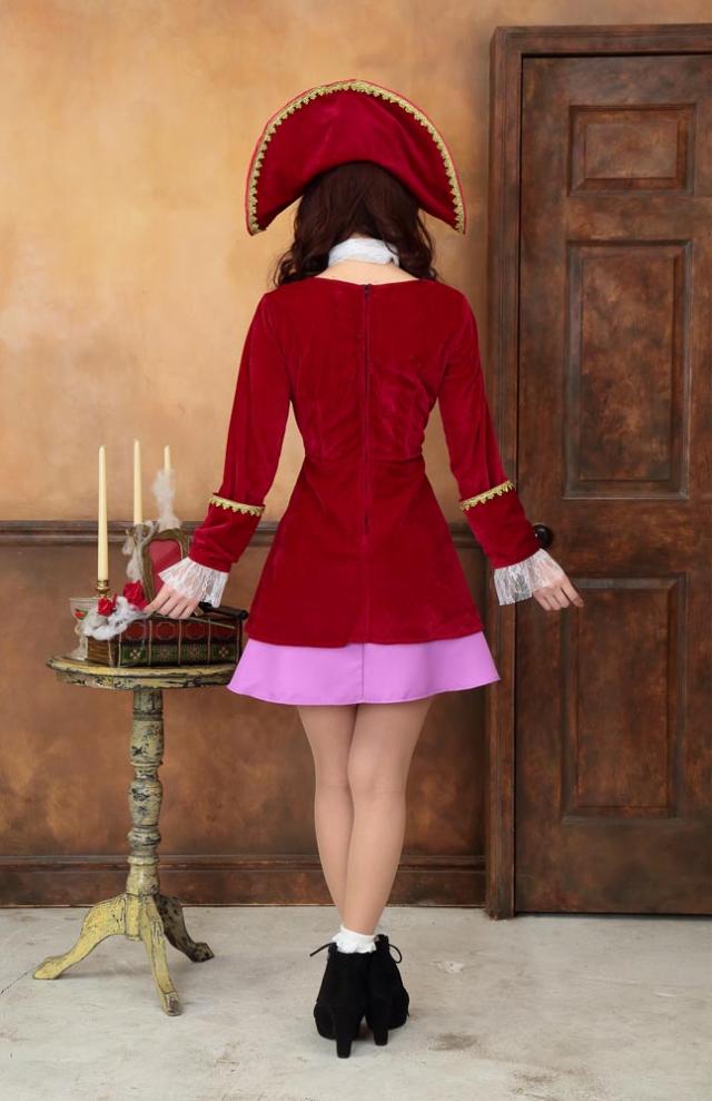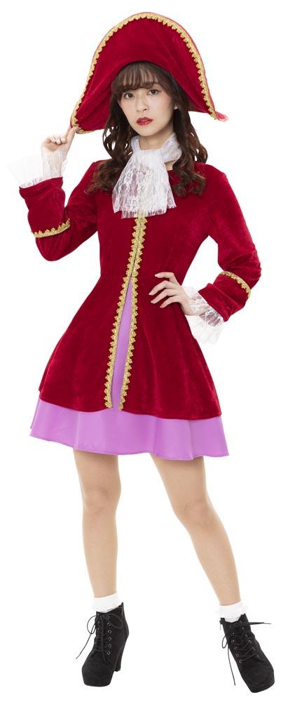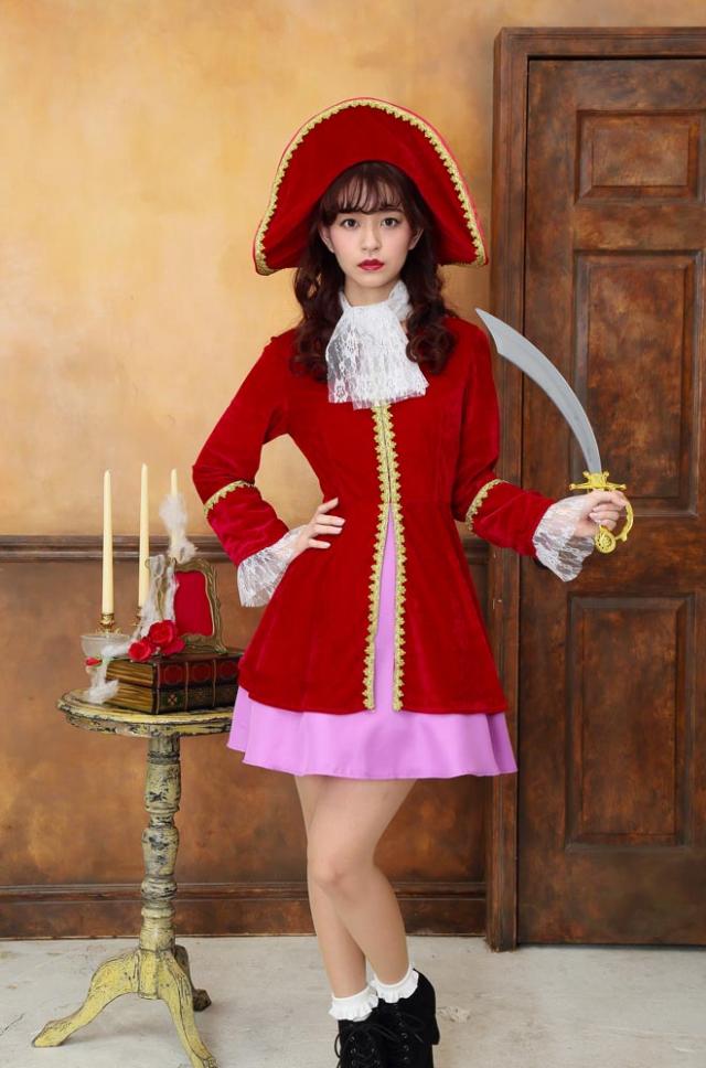 ワイヤー入りで好きな形に曲げられる存在感抜群の帽子がポイント!レース付きカフスは高級感たっぷり、金色のブレード付きです。パイレーツ関連コスチュームも多いのでグループでの着用もおすすめです。