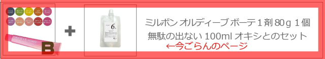 ミルボン オルディーブ ボーテ 80g (白髪染め)カラーチャートB 100mlオキシセット ページです。