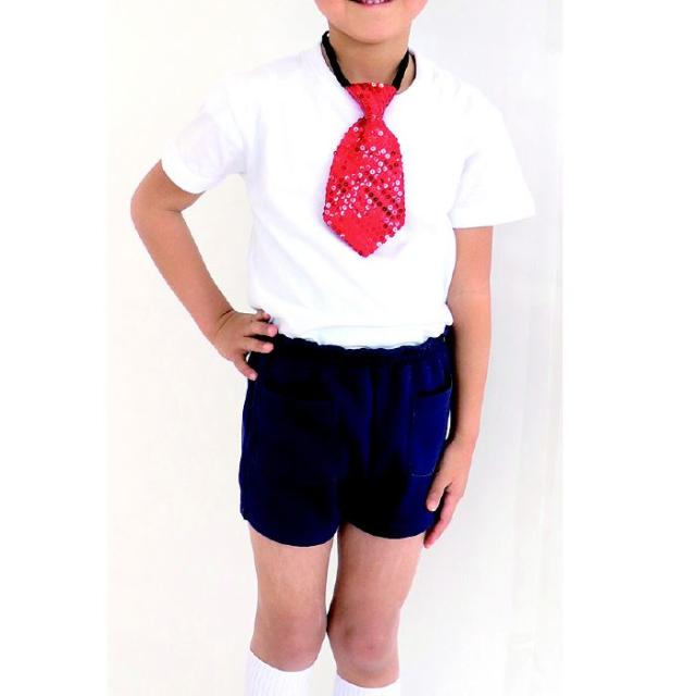 キラキラワイドネクタイ 赤 スパンコールネクタイ ワンタッチネクタイ 子供用 キッズ ダンス衣装小物 踊り 発表会 学芸会