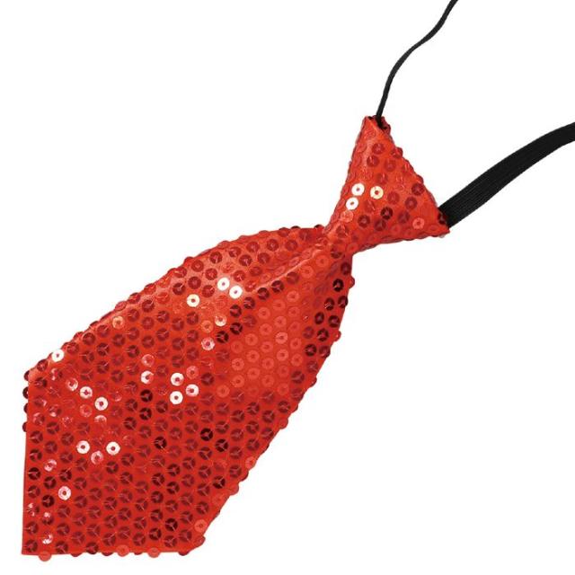 ■商品名:キラキラワイドネクタイ 赤 スパンコールネクタイ ワンタッチネクタイ 子供用 キッズ ダンス衣装小物 踊り 発表会 学芸会 かんたん装着