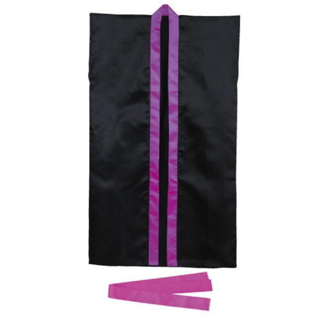 サテンロングはっぴ。肌触りがよく、光沢のあるサテン製のロングハッピ。