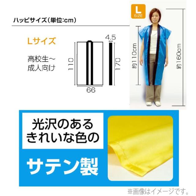 サテンはっぴ 運動会 ダンス 踊り はっぴ ハッピ 半被 法被 祭 まつり 体育祭 運動会 うんどうかい 文化祭 学園祭 学校祭 学芸会 発表会 応援 応援団 衣装 コスチューム ダンス 踊り イベント チーム クラス スポーツ 部活 クラブ 組 団体 応援 ライブ コンサート 仮装 変装 パーティー 誕生会 学校 カラー 大人 成人 高校生 大人サイズ 大人用 Lサイズ 高校 学校 部活 サークル