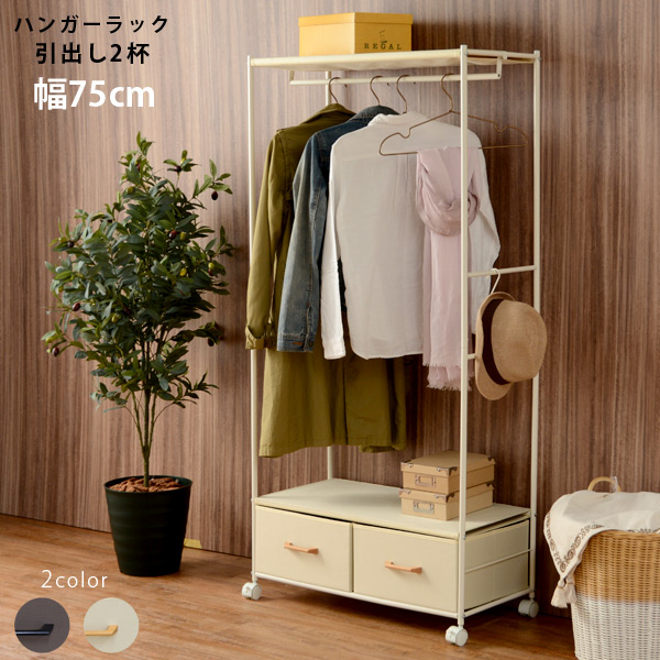 ハンガーラック スリム おしゃれ ラック 収納 衣類ハンガー コートハンガー 一人暮らし ハンガーポール キャスター 引き出し付 幅80cm ハンガーラック おしゃれ スチール キャスター付き