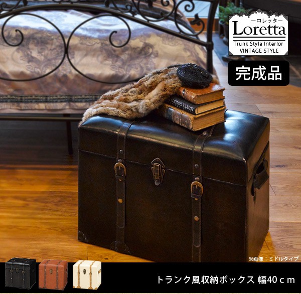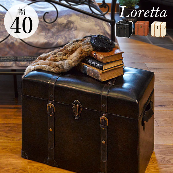スツール 収納 おしゃれ 椅子 完成品 アンティーク トランク風 収納スツール 幅40cm ロレッタ スツール 収納 おしゃれ 収納 スツール トランク風