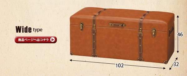 重厚感あふれる合皮レザー張りと使い込んだような金具がヴィンテージな雰囲気を盛り上げます。