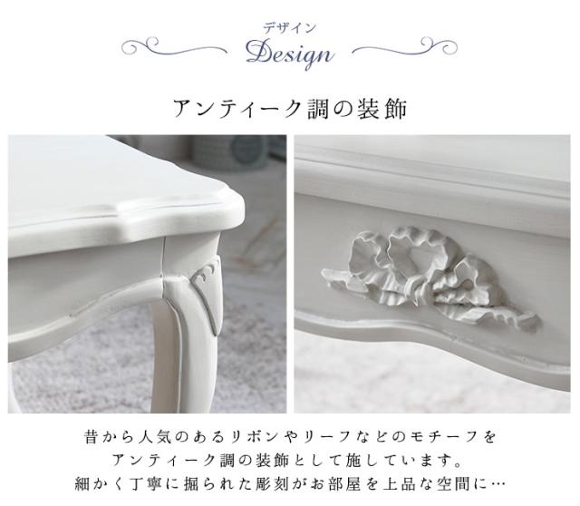 昔から人気のあるリボンやリーフなどのモチーフをアンティーク調の装飾として施し、クラシカルな猫脚で可愛さをプラス。