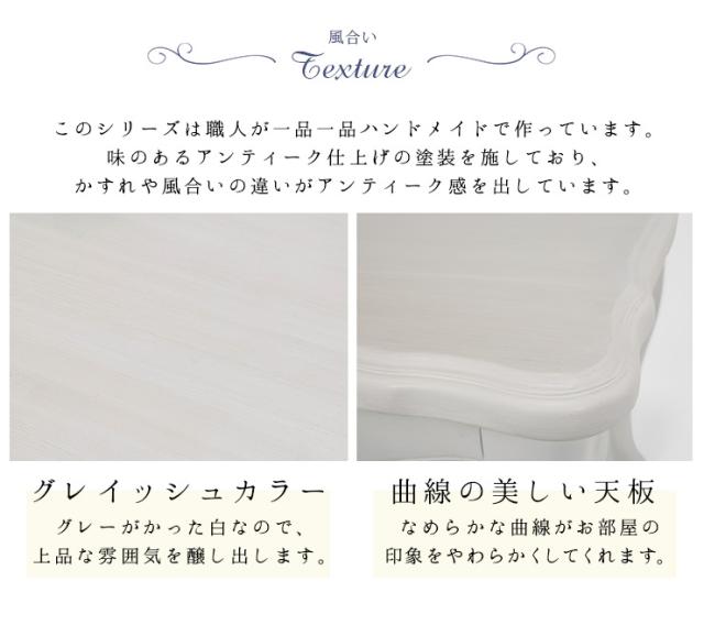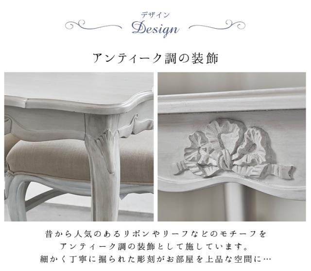 昔から人気のあるリボンやリーフなどのモチーフをアンティーク調の装飾として施し、クラシカルな猫脚で可愛さをプラス。