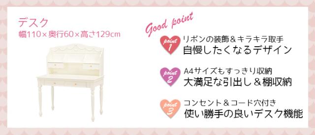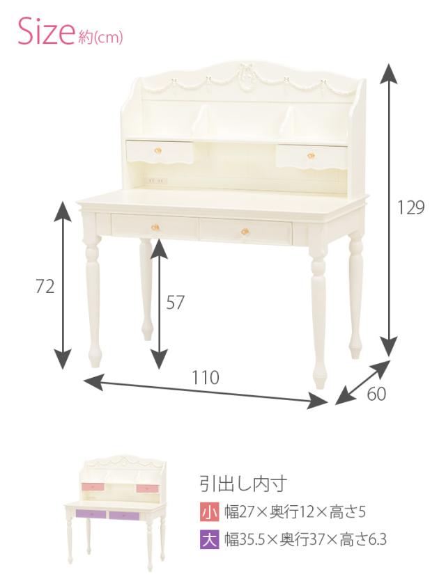 子ども用学習机 勉強机 学習デスク パソコンデスク キッズデスク 子供家具 おしゃれ 姫系 デスク かわいい 机 姫系家具 白 ホワイト プリティ 学習机 勉強机 学習デスク パソコンデスク ホワイト