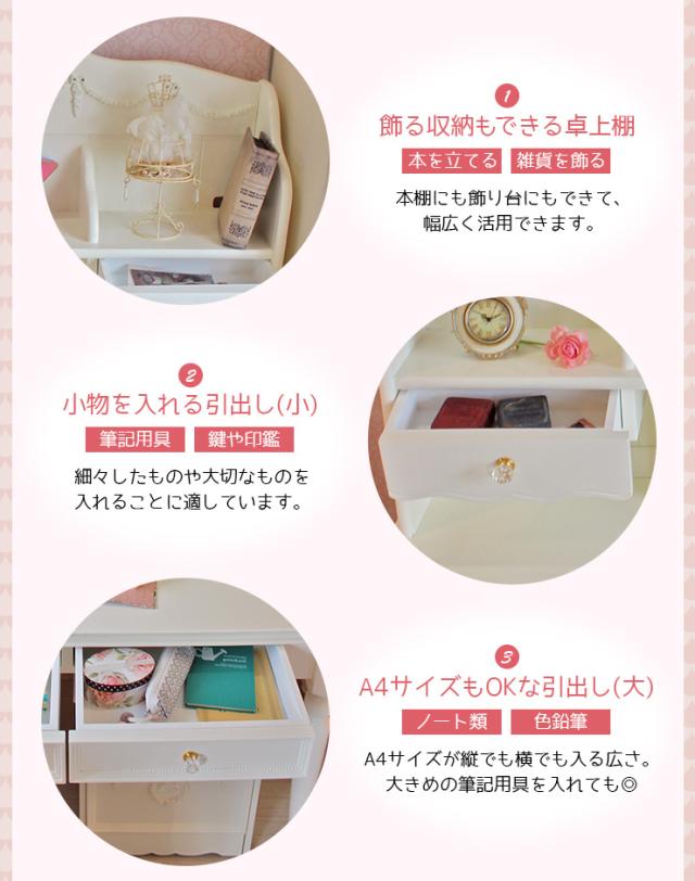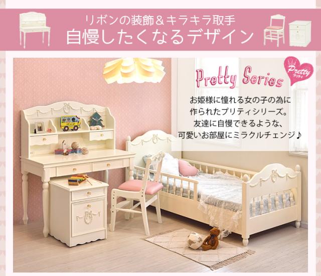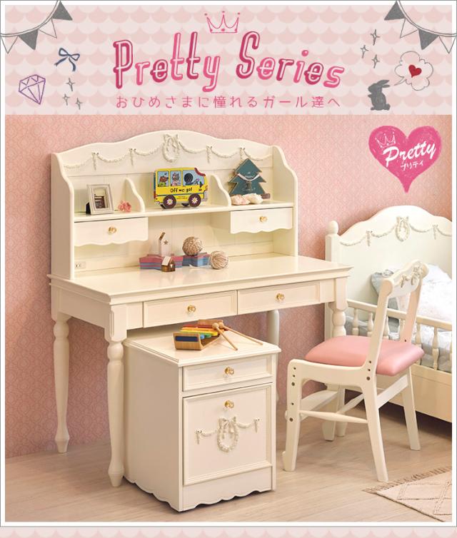 子ども用学習机 勉強机 キッズ 椅子 セット 学習机 おしゃれ 勉強机 キッズ家具 収納付き 姫系家具 プリティ デスク デスクワゴン セット リビング 学習デスク チェア