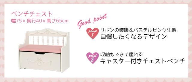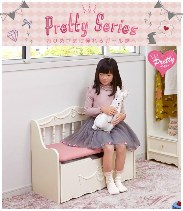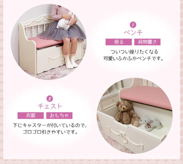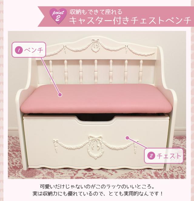 姫系 ベンチチェスト キッズソファ ベンチ 完成品 キッズ 収納付き かわいい 白 ホワイト Pretty プリティシリーズ 姫系 姫系家具 ベンチチェスト 子供 ソファー ピンク 白 ホワイト 姫系 椅子