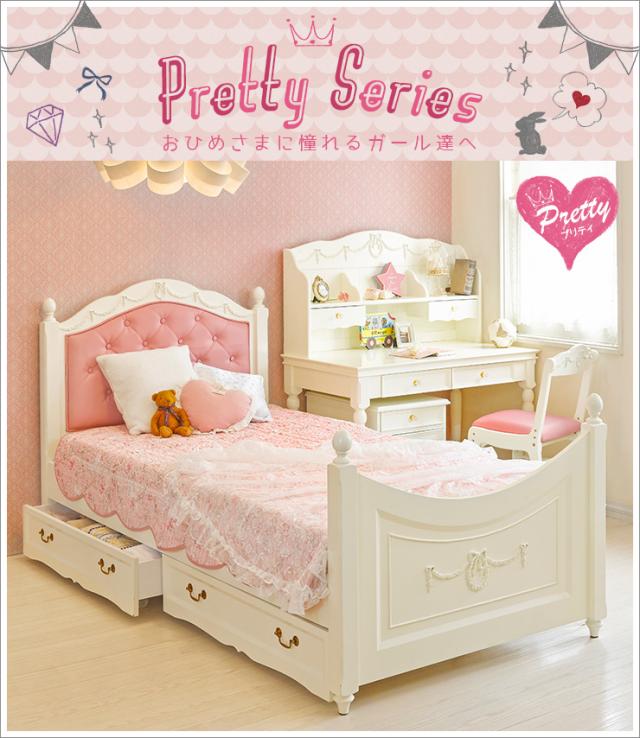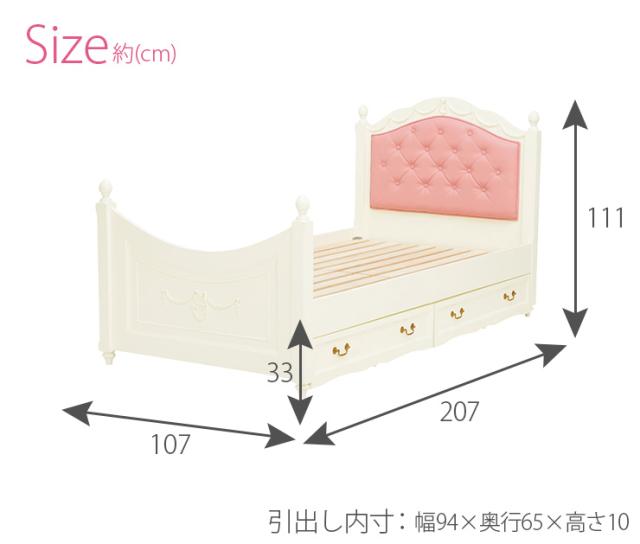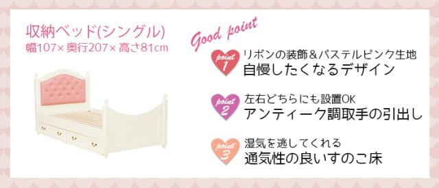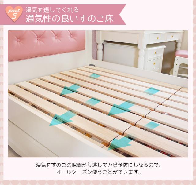 ベッド シングル 収納 ベッド収納付き ベッド すのこベッド すのこベッドシングル ベッドフレーム 子ども用ベッド キッズベッド 姫系 姫系家具 白 プリティ 姫系 ベッド 収納付き セミシングル ベット ベッドフレーム