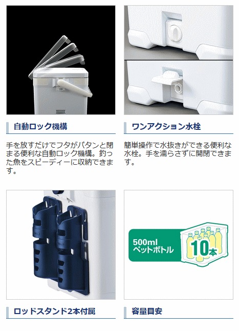 | 商品情報 | SHIMANO FIXCEL LIGHT RS 120 [フィクセル・ライト RS 120] / クールボックス クーラーボックス 便利なロッドスタンド2本付。 エギング、アジングライトゲームに! ●本体インナー部素材に、細菌の増殖を抑制し清潔を保持する抗菌剤ノバロンを採用 ●かつぎやすいフラットデザインボディ ●安定性と直立性を確保するハイグリップラバー脚 ■発売年:2019年 |