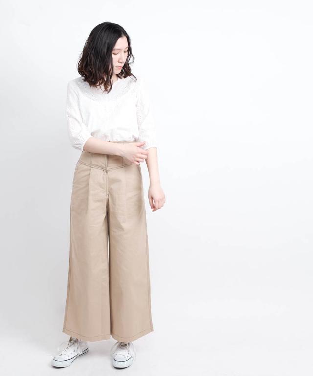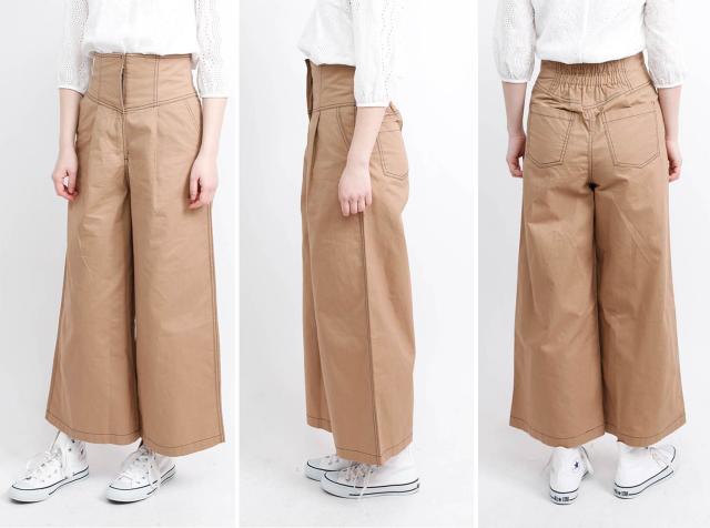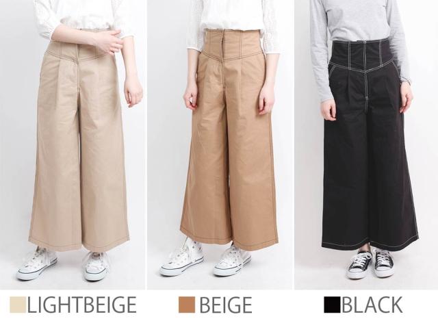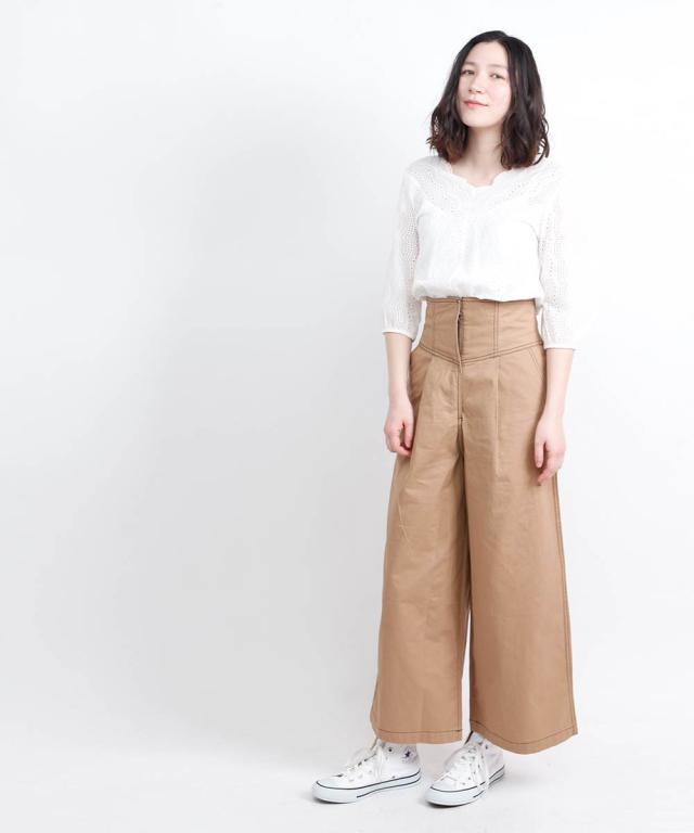 綿ツイルハイウエストコルセットパンツ ハイウエストパンツ レディース ワイドパンツ ボトムス ハイウエスト コルセットパンツ チノパン チノ