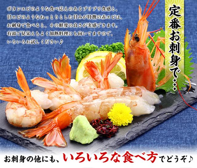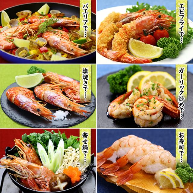 食べる直前に流水で急速解凍し、まずはお刺身でお召し上がり下さい。わさび醤油でエビの甘さと、とろけるような食感を十分にご堪能頂けます。お刺身の他にも、殻ごと塩焼き・空揚げ・薄味の旨煮などもお勧めですし、汁物、鍋物、茶碗蒸しなど、いろんなお料理にご利用頂けます。