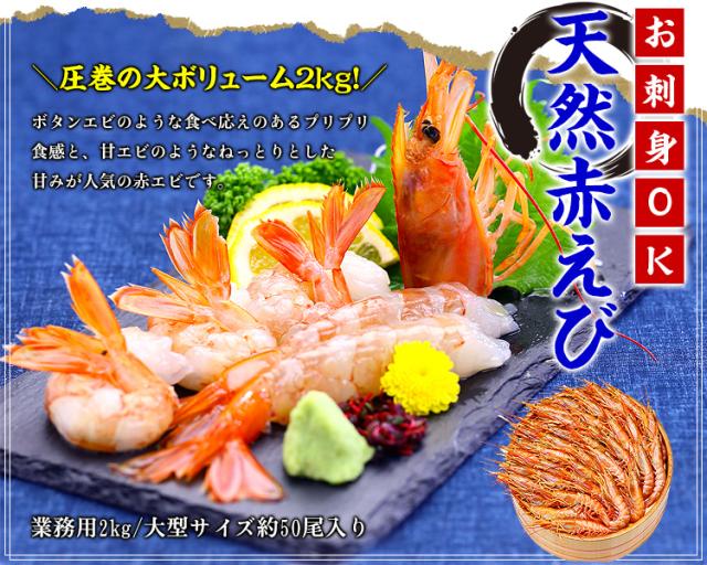天然赤えび 2kg (大型サイズ) 50尾前後 海老 エビ えび 赤エビ アカエビ あかえび バーベキュー BBQ e_ak 年末お届け可能 冬ギフト 年末年始