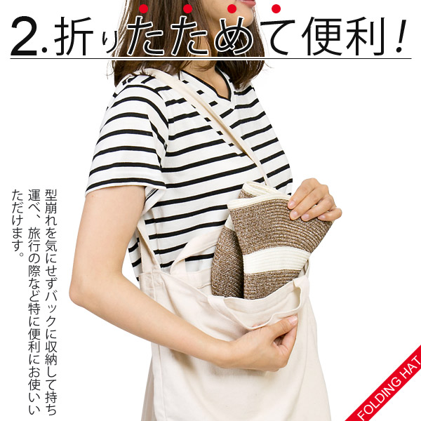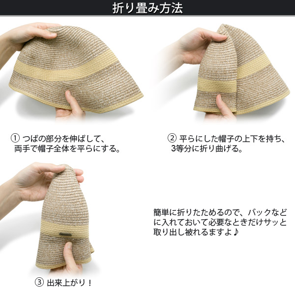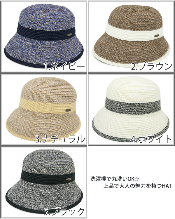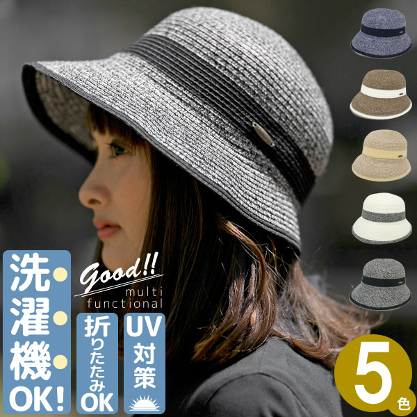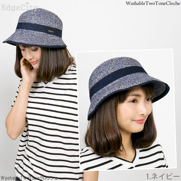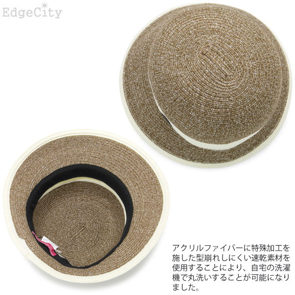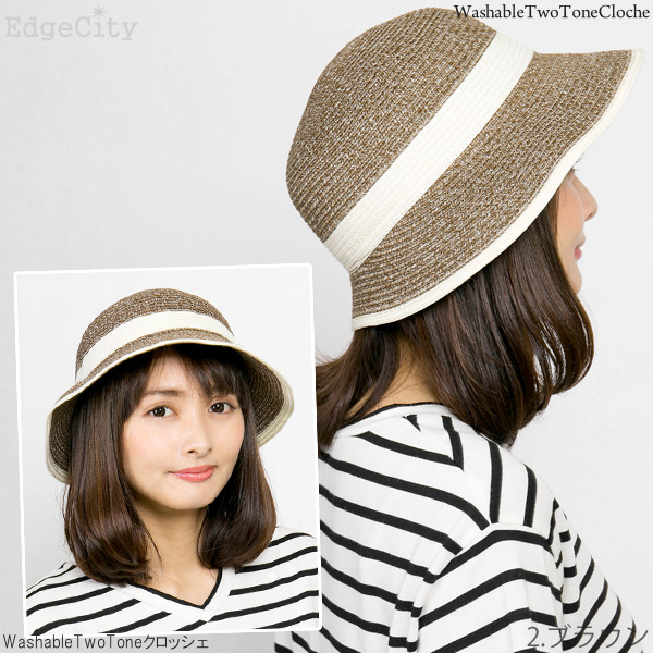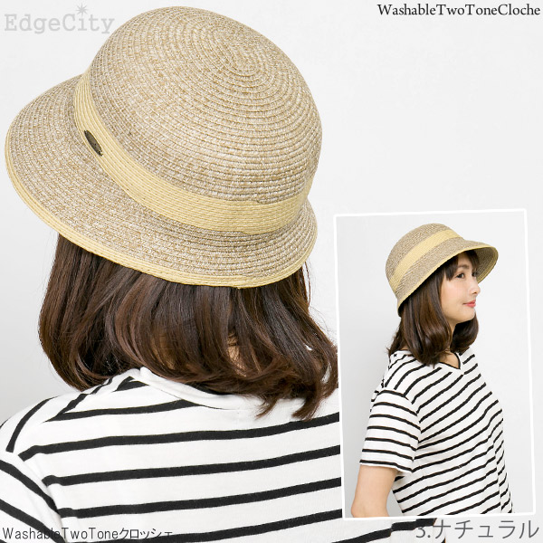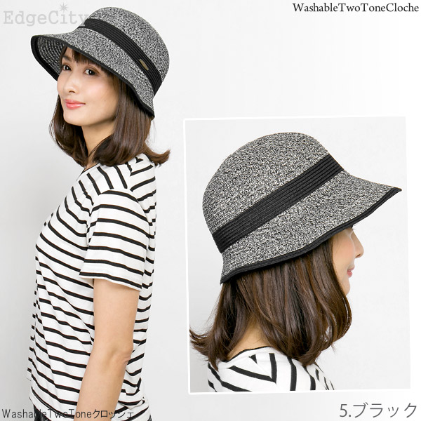 洗濯機で洗えるハット レディース [メール便可] 春夏 麦わら帽子 折りたみ UVカット / WashableTwoToneクロッシェ