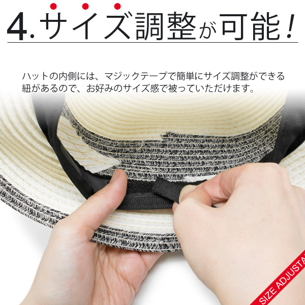 | サイズ | Mサイズ58cm(頭囲:約56〜58cm[紐でサイズ調整可能]、高さ:約13cm、横幅:約26cm[つばも含む]、つばの長さ:約6.5cm) |