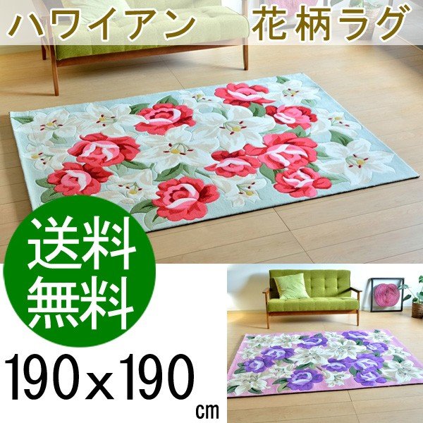 ラグ ラグマット 2畳 ハワイアン 北欧 おしゃれ かわいい 花柄 フラワー 190x190cm 正方形 送料無料 オールシーズン オリジナル ラグ・マット