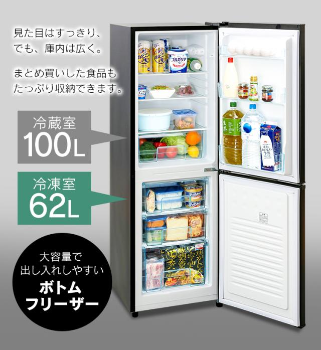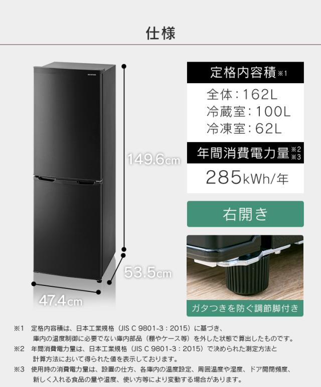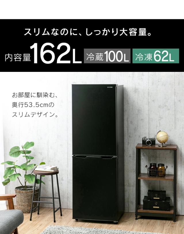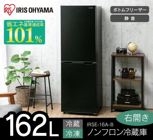 冷蔵庫 新生活 一人暮らし 大容量 大型 アイリスオーヤマ IRSE-16A-B シンプル 162L 買い替え本体 新品 ブラック キッチン ノンフロン冷凍冷蔵庫 送料無料