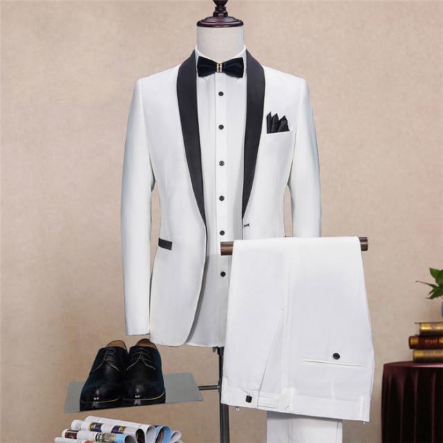 【送料無料】 紳士スーツセット メンズスーツ 1ツボタン メンズ ビジネススーツ 2ピーススーツ 忘年会 司会者 白 結婚式 スーツ 花婿スーツ