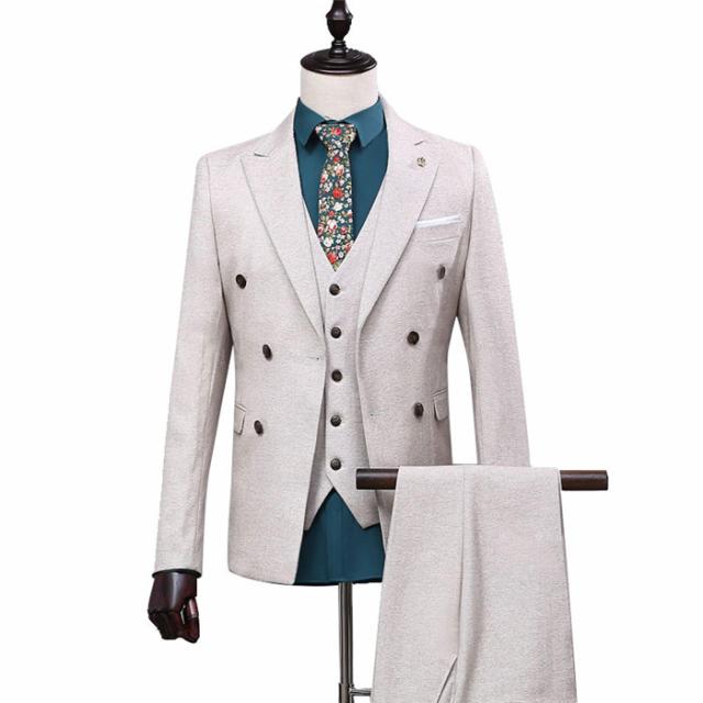 メンズスーツ ベージュスーツ 2ツボタン スリムスーツビジネススーツ セットアップ フォーマルスーツ 2点セット 忘年会 司会者 白 結婚式 スーツ 花婿スーツ eg143c0c0zb