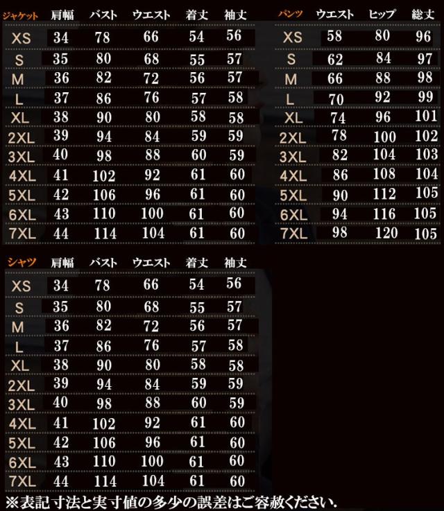 - サイズが上下スーツで