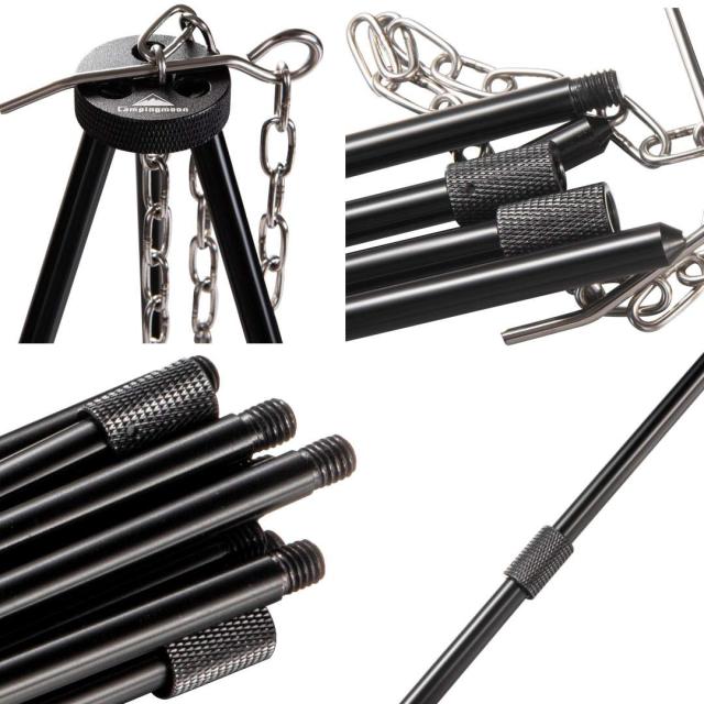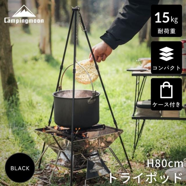 キャンピングムーン(CAMPING MOON) トライポッド M 3段折り 焚き火三脚 最大耐重量15KG 収納ケース付き ブラック 黒ギア MS-080-BK