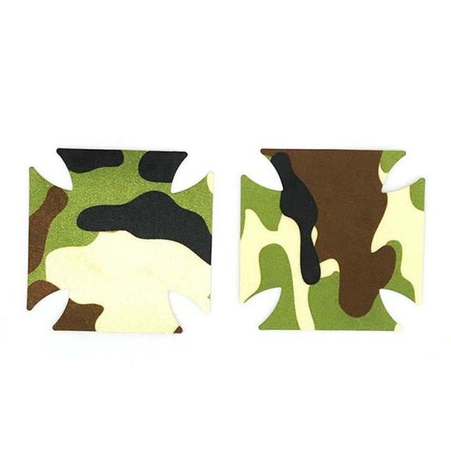 カモフラージュクロスニップルステッカー 1ペア販売 十字架 迷彩 ミリタリー 自衛隊 アダルト 乳首 シール 貼る 下着 ブラ ランジェリーニップルカバー ブレスト チェスト レディース メンズ ダンサー 女子 バストトップ セクシー ニップレス 胸 ダンス ニプレス 仮装 女優