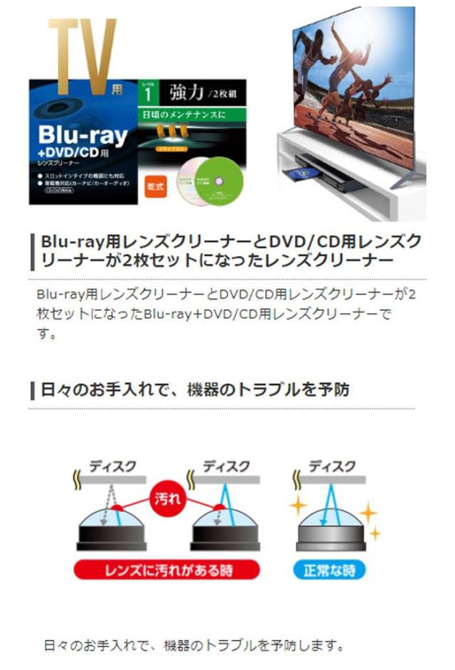 ■入り数:2枚入り(CD/DVD用レンズクリーナー×1、ブルーレイ用レンズクリーナー×1)