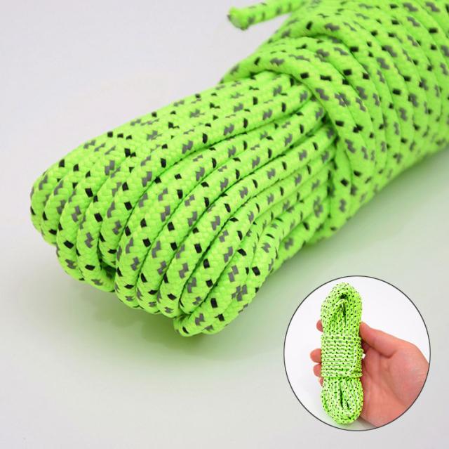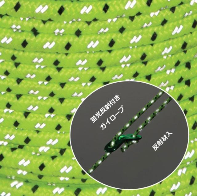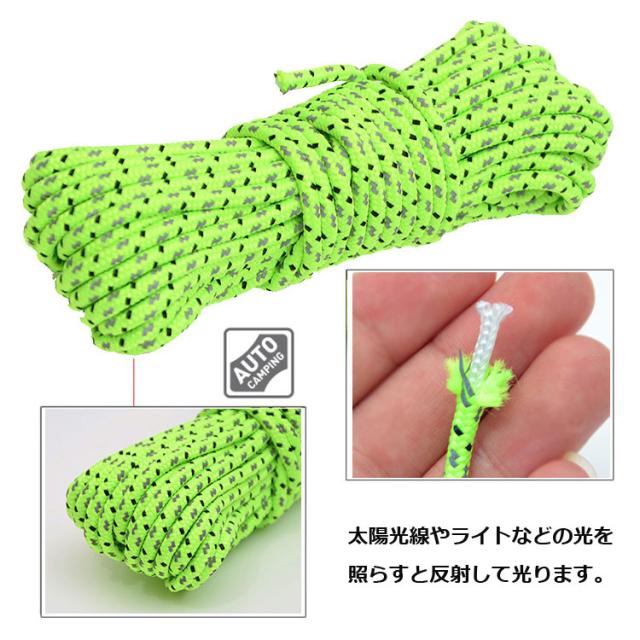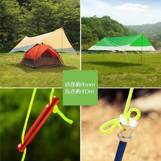 テント・タープ用ロープ 長さ約10m 蛍光色・反射材入りガイドロープ キャンプ テントロープ 夜間でも安心 事故防止 反射ガイロープ TROPE10M