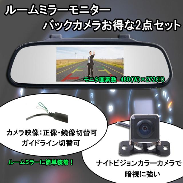 4.3インチルームミラーモニター+CCD小型防水バックカメラ2点セット 403CA206C