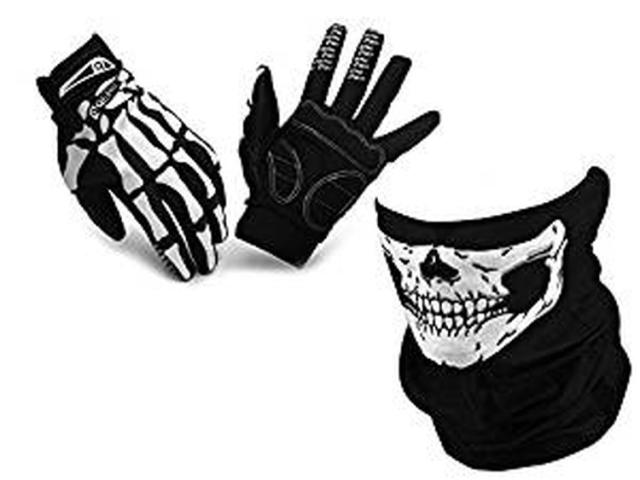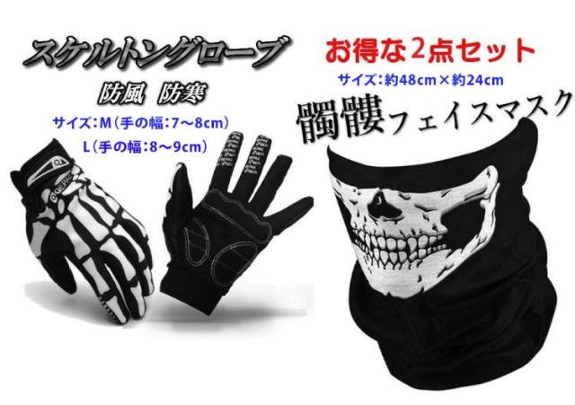 バイク/自転車用 スカルフェイスマスクとスケルトン手袋のドクロセット ハロウィン イベントなどにも TORE36QEP01SET