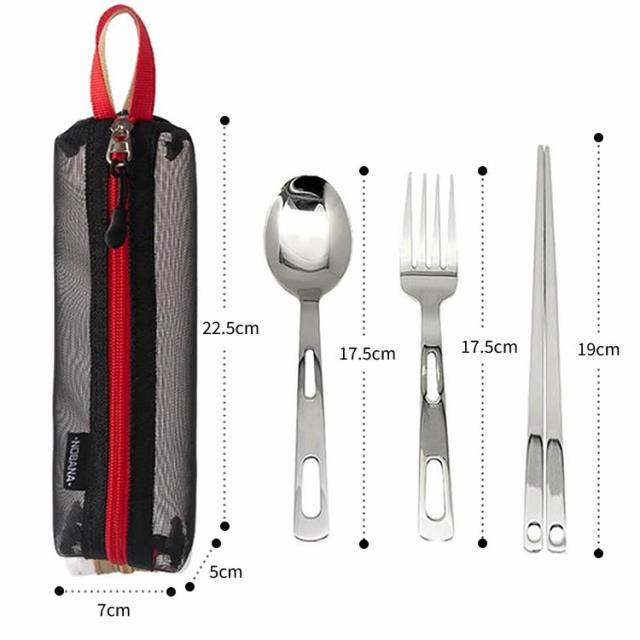 スプーン・フォーク・箸の3点セット 専用ポーチ付き 食器 ステンレス製 錆びにくい 耐久性 登山 BBQなどに HAS03S